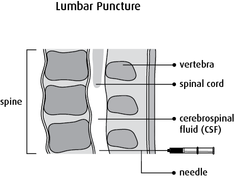 A lumbar puncture involves inserting a spinal needle through the skin and then through the space between the vertebrae until it enters the space that contains the CSF. The drug then goes directly into the spaces containing CSF.